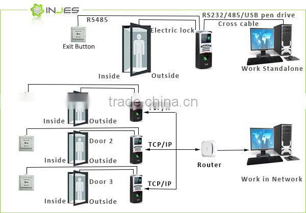 RS485,TCP/IP Port, Many devices can be monitored at the same time on one network server RFID Door Access Control Fingerprint Access Control COMM port TCP/IP,RS485,USB portOffer One Full Solution and One-Stop Service: finger print access control Fingerprint Access Control Display 2.8 inch color screen