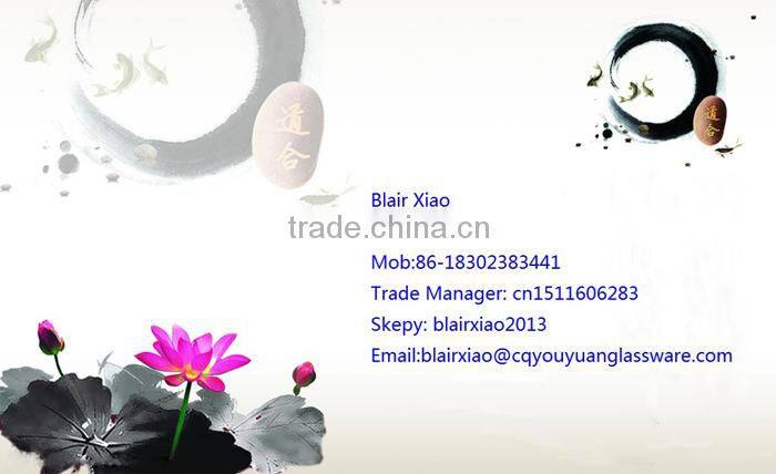 is located in Chongqing, China. our company specializes in the development, design, manufacture and sale of all kinds of high-quality glassware and glass bottle for Liquor,brandy,whisky,Vodka and Perfume,etc. Our company have a group of skilled workers and senior experts of raw materials formula and kiln design from in and abroad.our company is capable of producing reliable technology and quantity products.Our manufacturing processes include manual blow and traditional hand-cut , semi-automatic machine suppression, automatic machine blowing, decorating fire, sandblasting, glass frosting and bronzing. Our main products are coffee pots, artificial blowing wine glasses, tea and wine sets, glass vases, tornado lamps, ashtrays, candle holders, decorative lighting accessories,seal jar,water cups, glasses with engraving, beer glasses, ice cream cups, fruit plates, juice glasses, advertising cups, salad bowls, glass lampshade,fish tanks and various items used in hotels and houses.