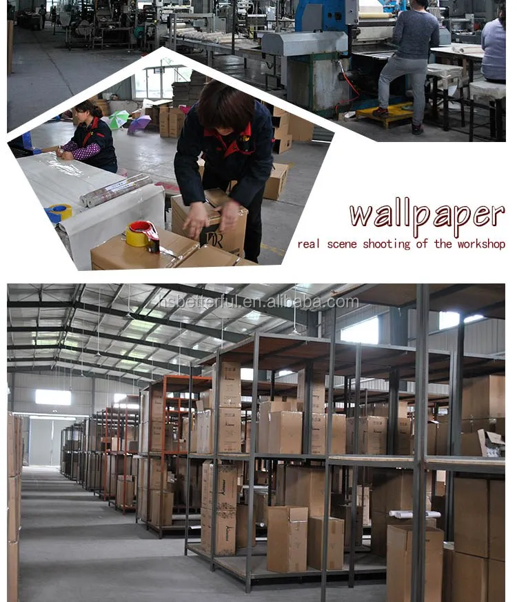 Huangshan Betterful Decoration Material Co., LTD is designing and manufacturing kinds of wallpapers, we have 126 presons by now.Six production lines will be produce 36000rolls one day! We are not the best factory but we would try our best for you! Thanks!