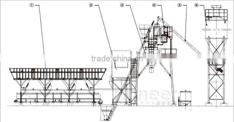 Products profile: HZS50 Skip Type Algeria Cement Mixing Plant Supplier with feature of small floor area coverage and easy installation and moving from site to site.
