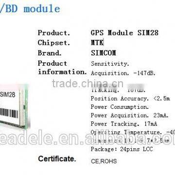 SIMCom presents a high performance and reliable assisted GPS module-SIM28. This is a standalone L1 frequency GPS module in a SMT type with MTK high sensitivity navigation engine, which allows you to achieve the industry's highest levels of sensitivity, accuracy, and Time-to-First-Fix (TTFF) with lowest power consumption.