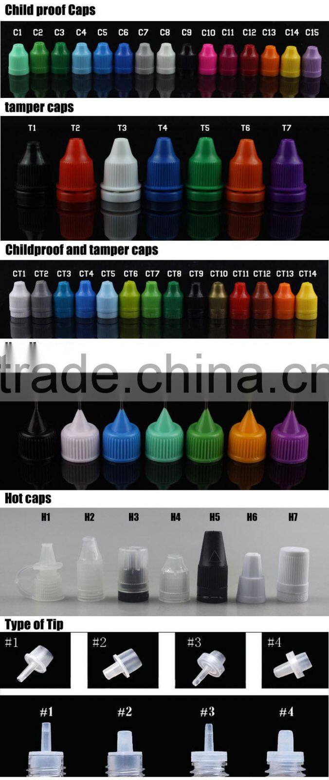 What Specifications of our colorful PET dropper bottle with childproof cap for e juice?