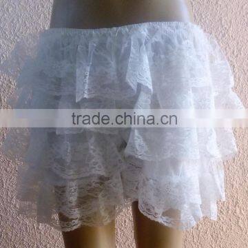 This fashion lace ladies leggings is for women ,it have many layers and the color is white as attached ,it is made of by polyester.