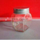 500ml Exmpty Clear Wide Mouth Hexagon Glass Jar With Screw Metal Lid