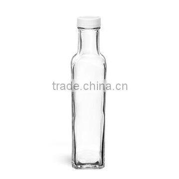 250 ml Clear Glass Square Bottles w/ White Ribbed Lined Caps