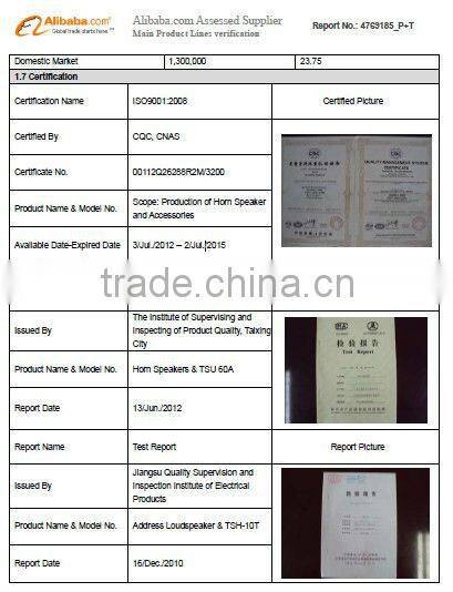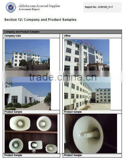 TAIXING YANGSHENG ELCTRONIC CO., LTD is a professional manufacturer of PA speaker system products with decades of researching and manufacturer experience. Primary products are paging horn speaker, industry specialized speaker, siren speaker, wall speaker as well as in-ceiling speaker etc. Professional products are certified by CE and ROHS standards. And all products are exported to clients in Europe, America, Middle East, Africa and Southeast Asia.