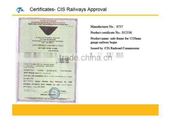 we obtains the technology to manufacture many types of Meter-gauge and Wide-gauge railway the bogie of wagons, which can meet different requirements of all kinds of special purpuse railway and fittings wagons of the customers at home and abroad