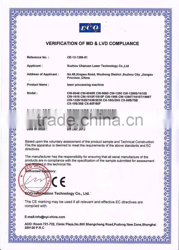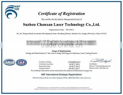 Suzhou Chanxan Laser Technology Co.,Ltd is situated in the Wuzhong economic development zone, Suzhou city. We specialized in research and design, produce, sale and customized various of high-end laser machines and popularize the laser application technical..Our products and service are widely used in research education, metal sheet cutting and welding, laser mark code, electronic materials, LED, adverting materials, medical products, crafts garment, textile and etc fields.