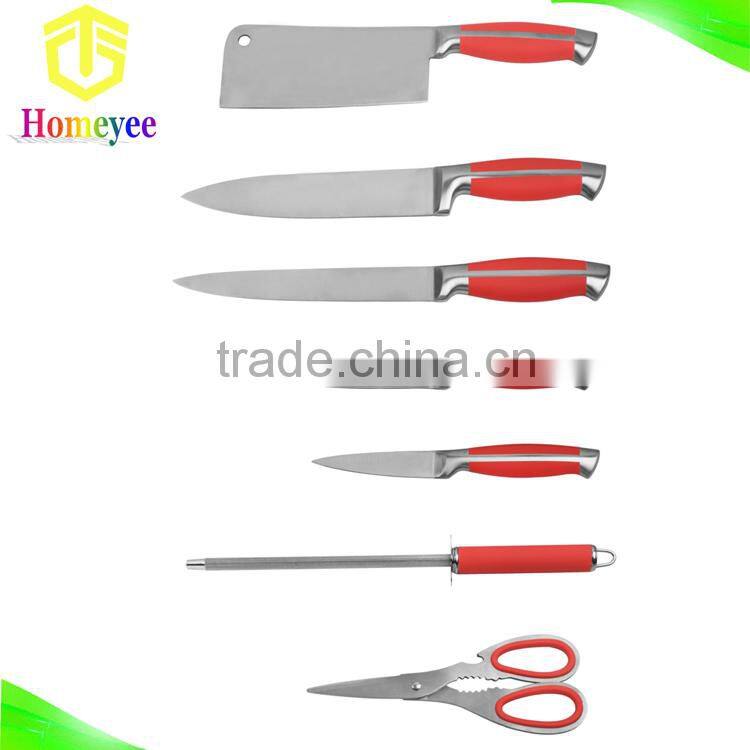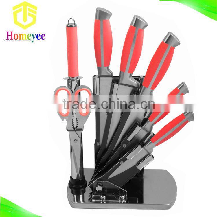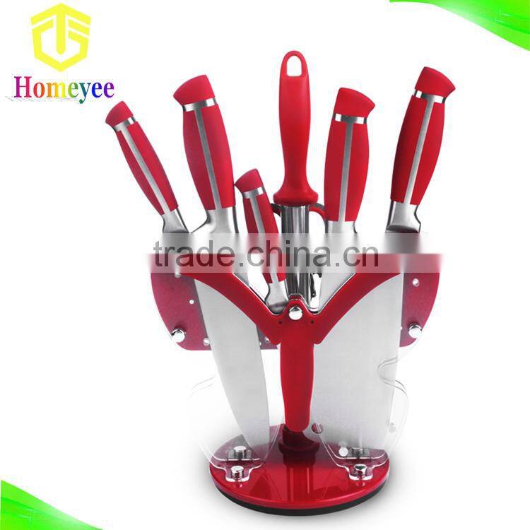 Red handle classic royal kitchen knife set with butterfly acrylic stand |