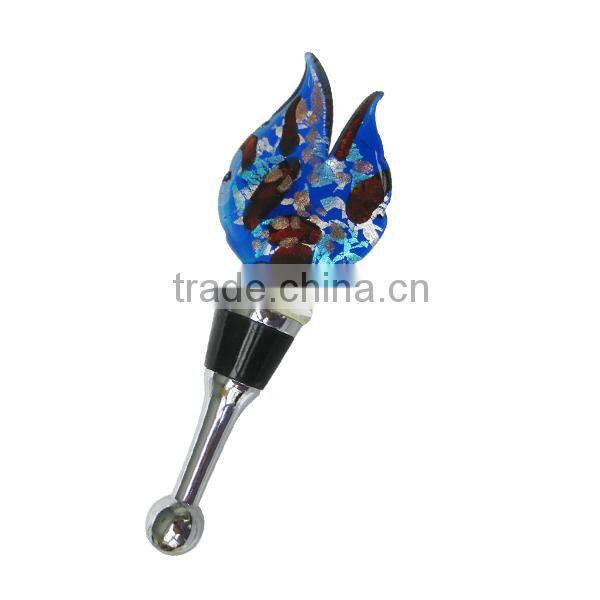 Novelty Flame Shaped Silver Foil Colorful Lampworking Glass Red Wine Stopper