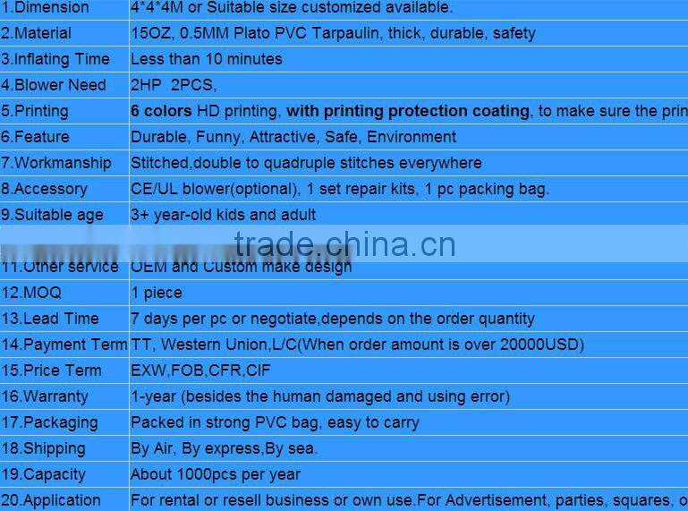 3) Sunjoy has 10 Years expirence in inflatable manufacture industry.