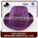 Hand Crocheted Straw Fedora Hat Wide Brim