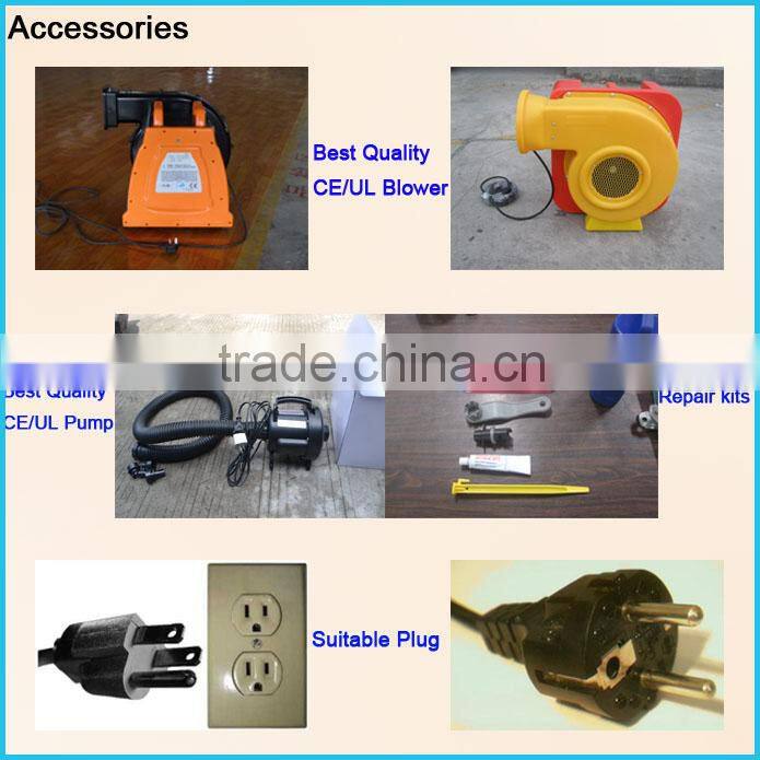 Details of the product: 1. Feature: Durable, attractive, safe and environment concerned. 2. Our wider joint part is 2.5cm from which most of other factories is 1cm. 3. We double stitching everywhere, with fourfold stitching at bottom stress point. 4. It is suitable for family, school, playing center, and amusement park, etc. 5. CE/EN14960/SGS /EN71certificate. (we accept third party test) | |||