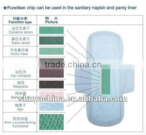 2nd layer: woven cloth of anion+Far-IR chip (which contains more than 6100/cm3 anion, and it works naturally to relieve menstrual discomforts) functional chip could be chioce