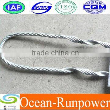 2.Guy Grip clamp preformed wire legs twisted and the formation of air traffic control, rear for the preformed cutter ring.The formation of preformed wire legs wrapped in air traffic control when the Guy line can produce a strong grip strength, and to fix the twisted ring anchor or tower on the ground.
