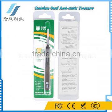 This BEST BST-204EDS Superb Stainless Steel Toughened High-grade Anti-static Tweezers makes great contribution to avoid interference by static. Adopt superb stainless steel which processed by toughened technology. High quality material forges its high strength, great hardness and stable performance. Besides, by anti-static processing, the head is effective to get rid of interference caused by static. What is more, processed by polishing and sand blasting matt procedure, the surface has not dazzling reflecting light in case of danger. On top of that, the side faces are smooth and comfortable to use by polishing. It will never let you down!