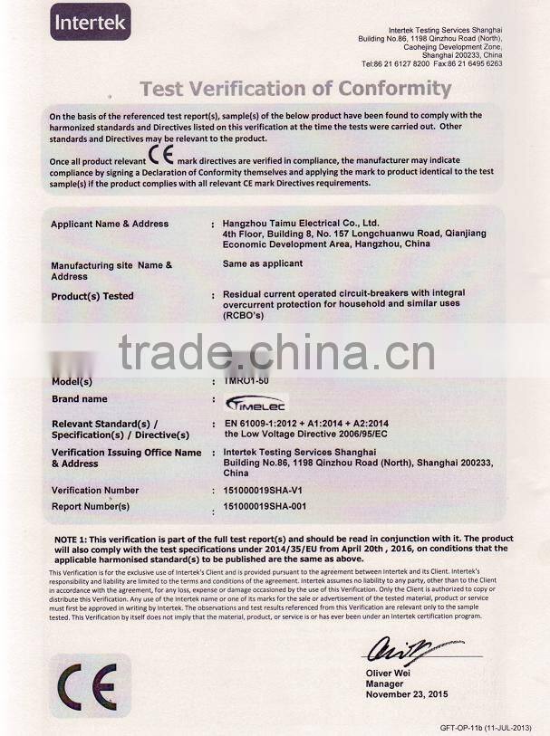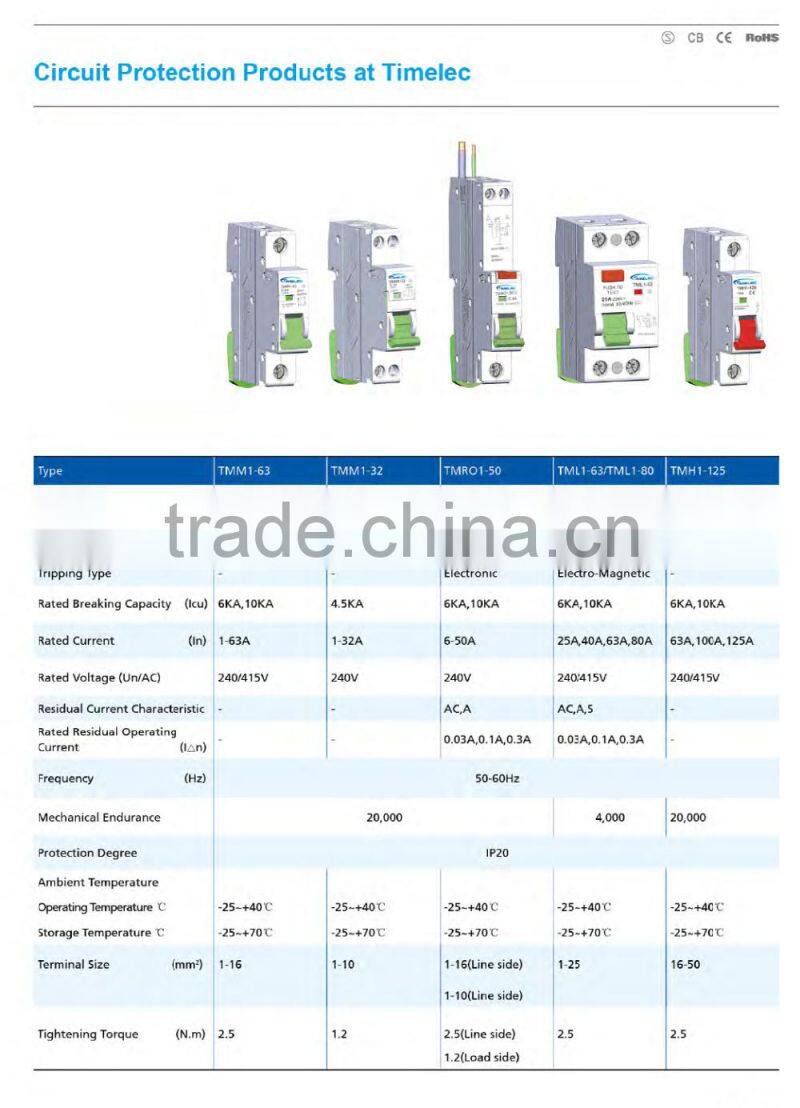 TIMELEC China Good Products 2P 4P 63A 240/4145V 6KA RCCB Electric Circuit Breaker