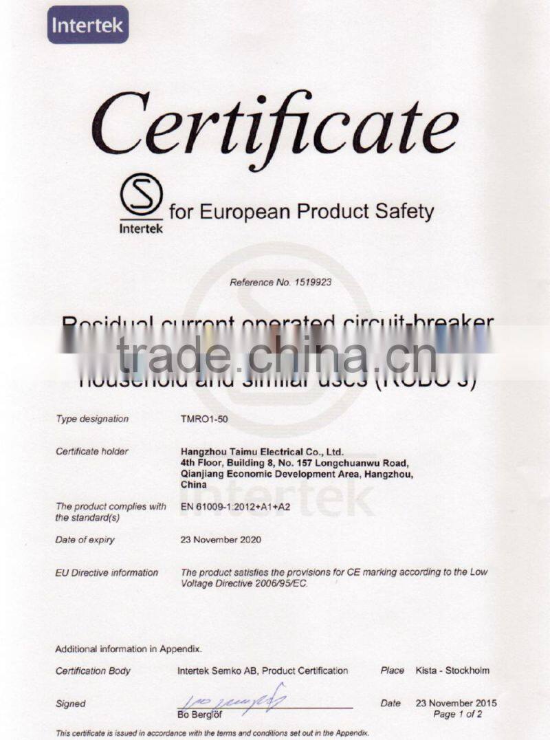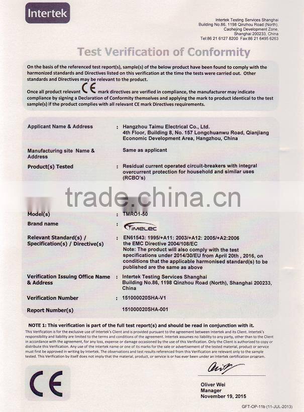 Electrical type RCCB completely in compliance with IEC61008-1 Standard, got SEMIKO certificate.