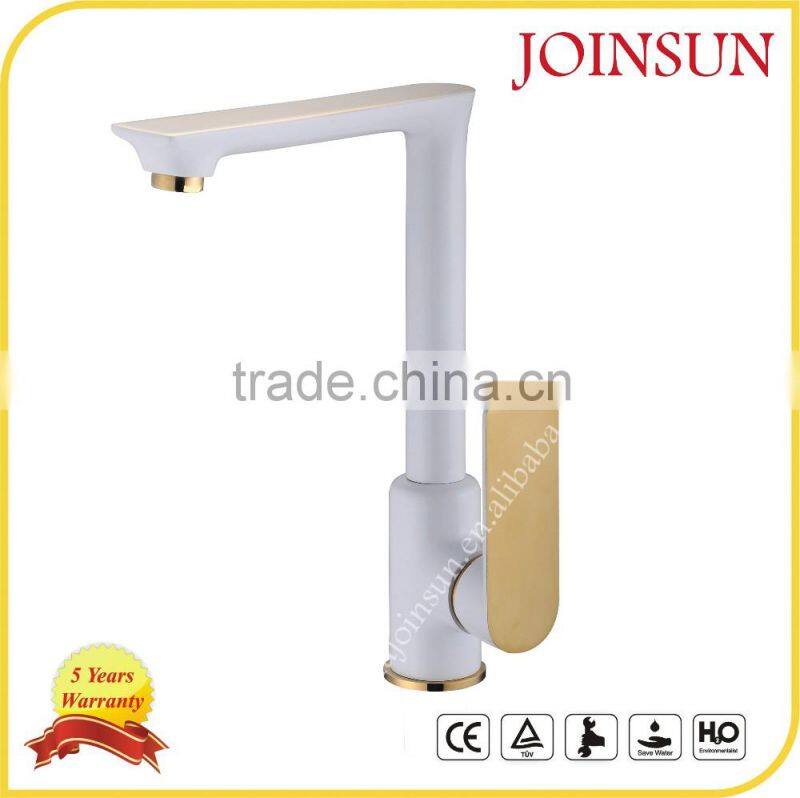 2016 Gold & White High Quality Deck Mounted Brass Single Handle Kitchen Faucet.
