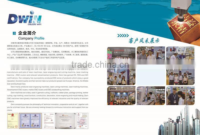 Is a high-tech enterprise that is engaged in the research, manufacture and sale of laser machines, laser engraving and cutting machine, laser marking machine ,CNC routers and relevant advertisement products. Dwin has gained CE, FDA and ISO certifications. Our company has successfully produced DW series of products which enjoy a good reputation. Excellent quality and fast service make our products spread over Europe, America, the Middle East and Southeast Asia.
