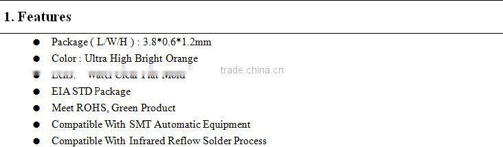 | Emitting Color | Orange | Luminous Intensity | 180mcd | |