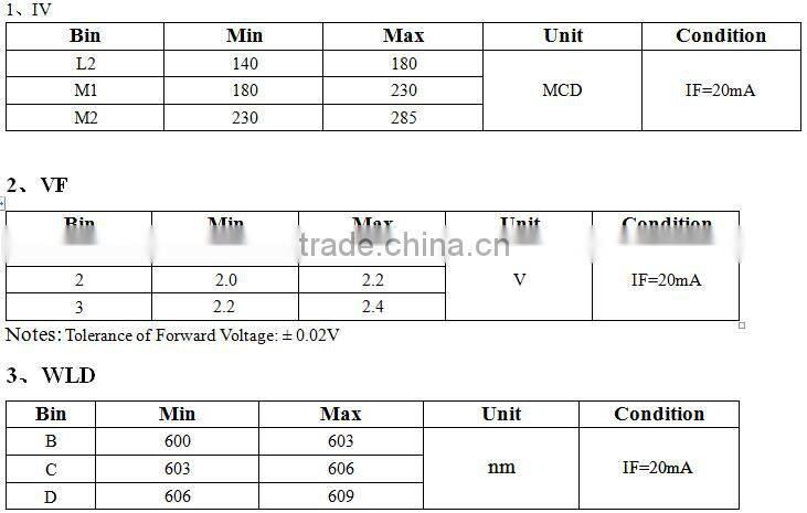 | Color Temperature | 600-609nm | Operating Temperature(℃) | -30, 85 | |
