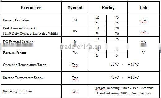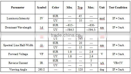 | Emitting Color | Other, RED YELLOW | Luminous Intensity | Customers' Requirements | |