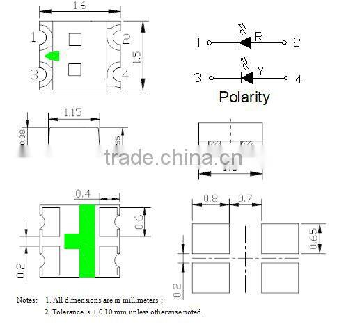 1.6x1.5x0.55mm Package Rgb Chip Smd 1608 RGB Smd Led