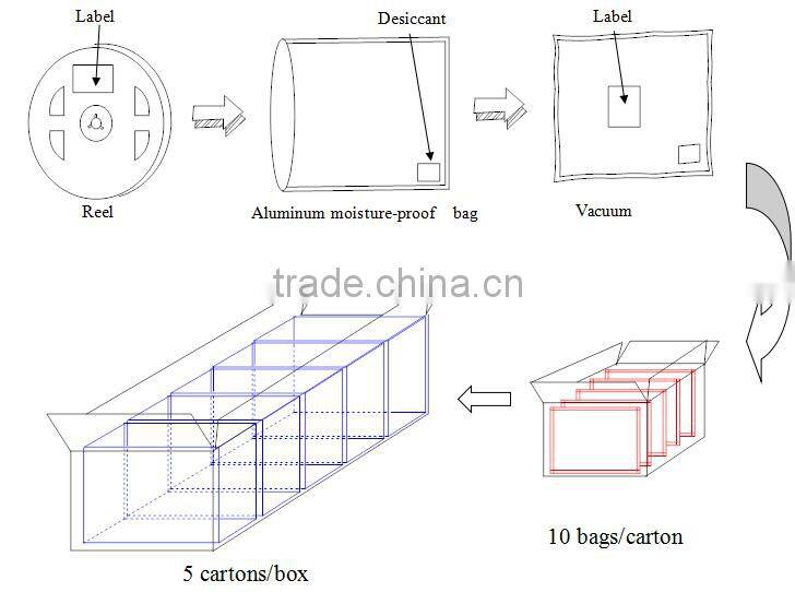 4. Package Information: reel---tape---aluminum moisture-proof bag--10bags/carton--5catons/box box size:65.72*25.40*21.90cm or 25.875*10*8.625inches
