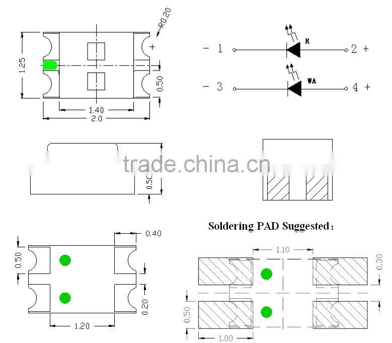 l Package ( L/W/H ) : 2.0 × 1.25 × 1.1 mm l Color : Ultra Bright Red/ Warm White Bi-Color l Lens: Water Clear Flat Mold l EIA STD Package l Meet ROHS, Green Product l Compatible With SMT Automatic Equipment l Compatible With Infrared Reflow Solder Process |