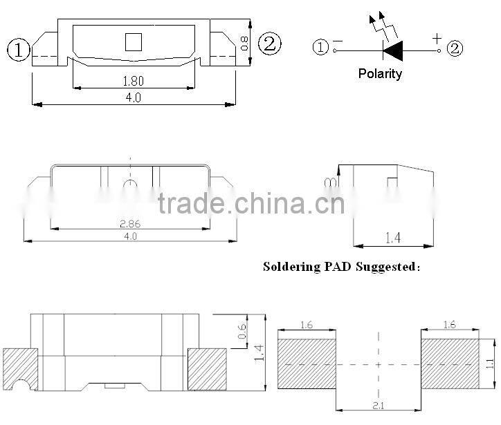 l Package ( L/W/H ) :4.0× 0.8 × 1.4 mm l Color : Ultra Bright Standard White l Lens: Yellow Diffuse Flat Mold l EIA STD Package l Meet ROHS, Green Product l Compatible With SMT Automatic Equipment l Compatible With Infrared Reflow Solder |