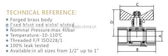 ART.1018 Full Port Male/female Brass Ball Valve and Forged Nickel Plating Brass Boby DN15 DN20 DN25 Thread DZR and High QualityUS$ 0.7 - 30MOQ: 1 Piece