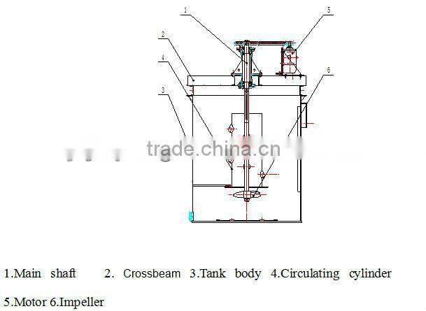 3)There equipped with a duck and the impeller is in it. The improvedment of the agitation ability increased the negative pressure caused by slurry movement, which is confined to a limited space by the duct, reinforcing the sucking ability for slurry and chemical and further strengthening the cycling effect of the slurry and chemical