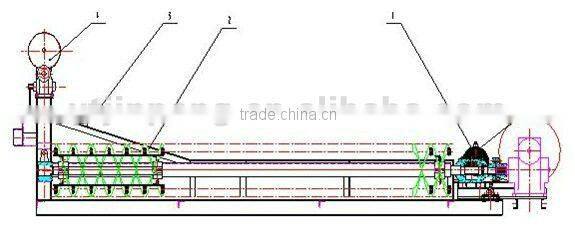 2.Spiral: It is the main components of this machine, it formed by the main shaft, frame, spiral blades, lining iron frame. The frame, spiral blades, linked iron are formed to connected spiral surface, because the shaft is constantly rotating, so the role of helical face is mixing the slurry , make fine particles flow from the overflow weir, coarse mineral particles conveyor from the screw first to discharge port.