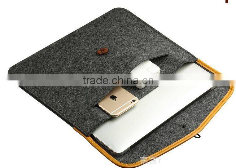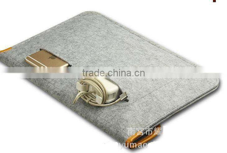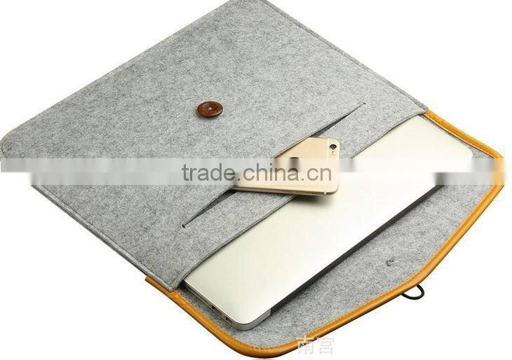 3 Size 4 Style Option Leather Edge Double Layer Natural Wool Felt Laptop Bag for MacBook Universal Tablet Laptop Sleeve Bag
