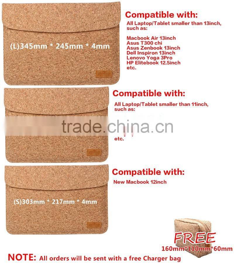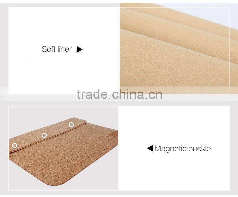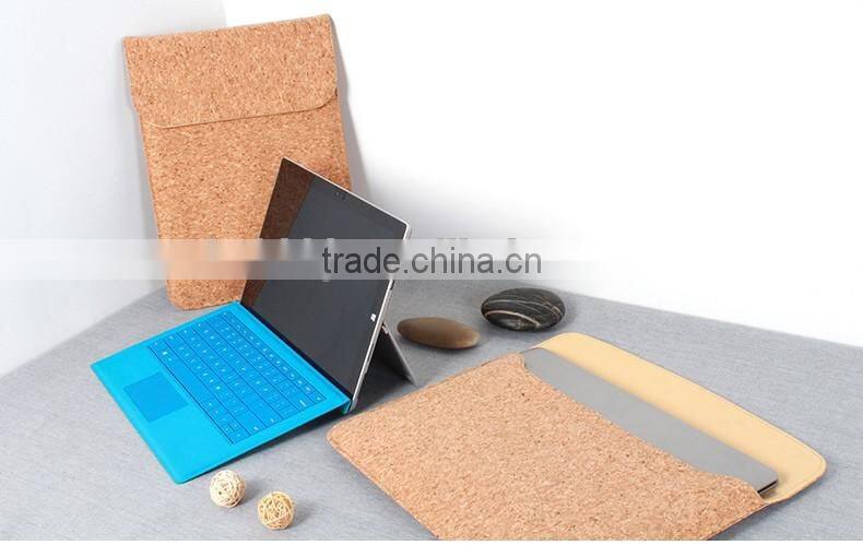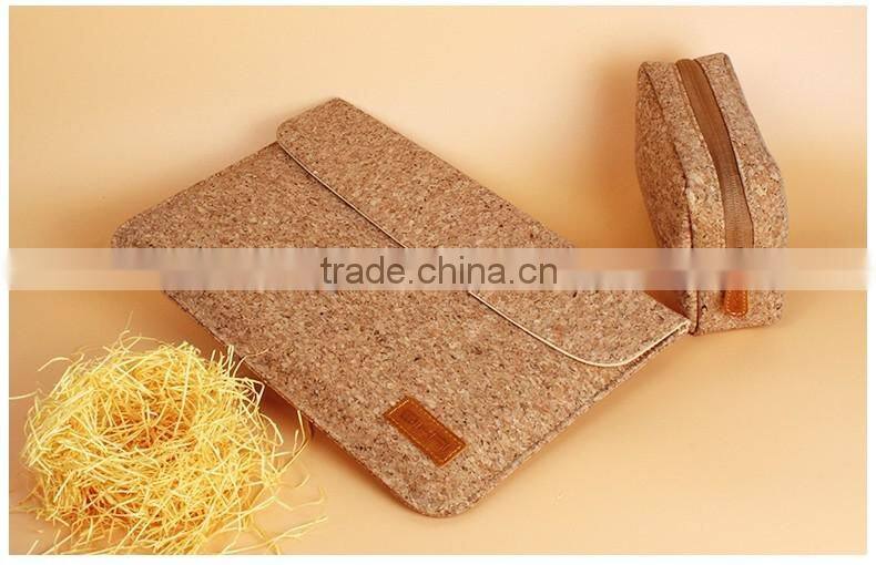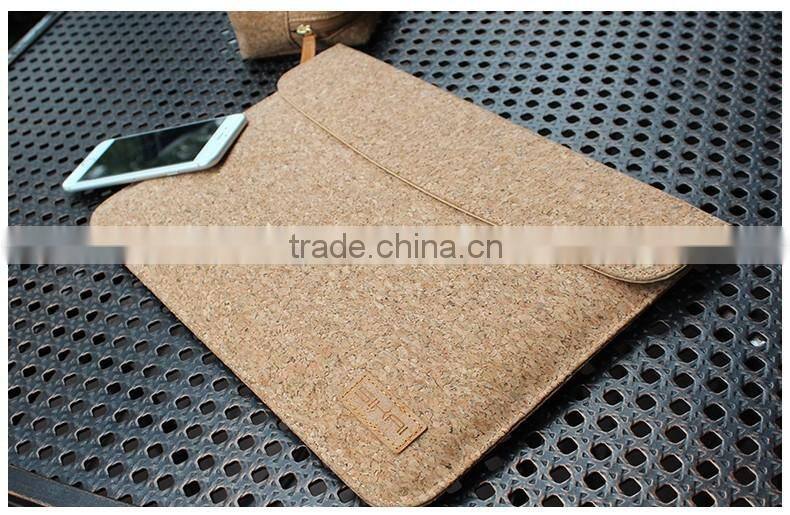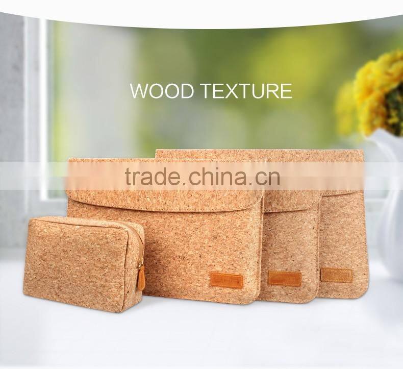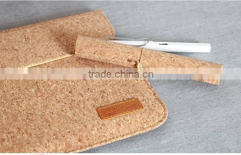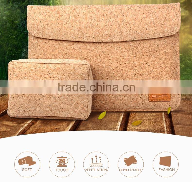 Sikai Patent Natural Oak Bark Water Proof Environmental Smooth Pouch Bag For Universal Laptop Tablet Cork Pouch Case Mouth Bag