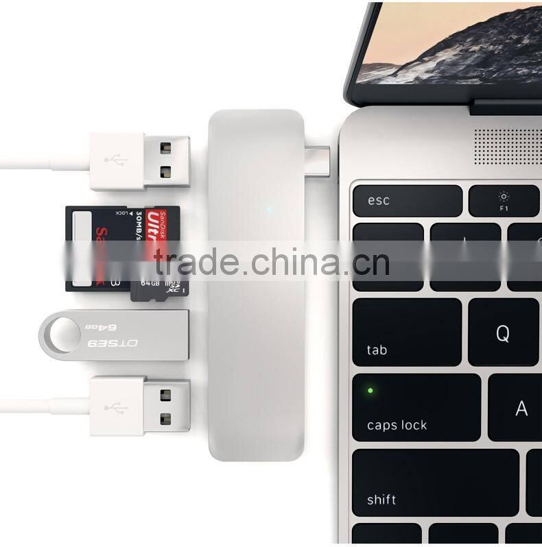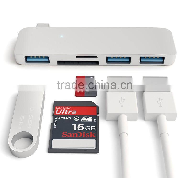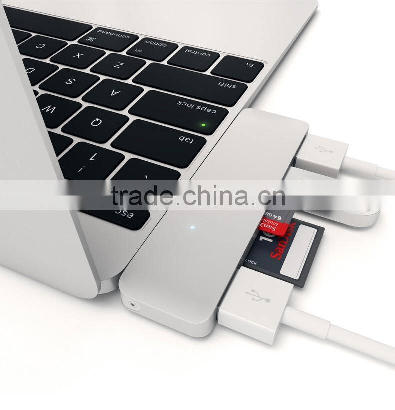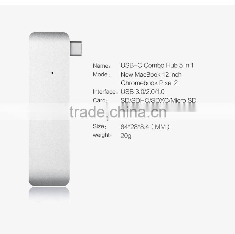 Home > Products > Warehouse 2 > Premium 5 in 1 USB 3.0 Sharing USB C Combo Hub For New MacBook 12 Inch Chrome Book Pixel 2 Card Reader USB Hub