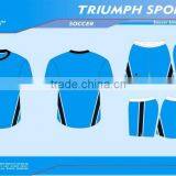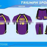 Triumph can custom manufacture and supply a wide range of affordable, quality soccer clothing for your School, Club or League. We manufacture simple cut and sew contrast color sleeve to fully customized dye sublimated (Digitally Printed) full color Soccer Uniforms. So whatever is your budget we have an affordable Soccer uniform for your team.