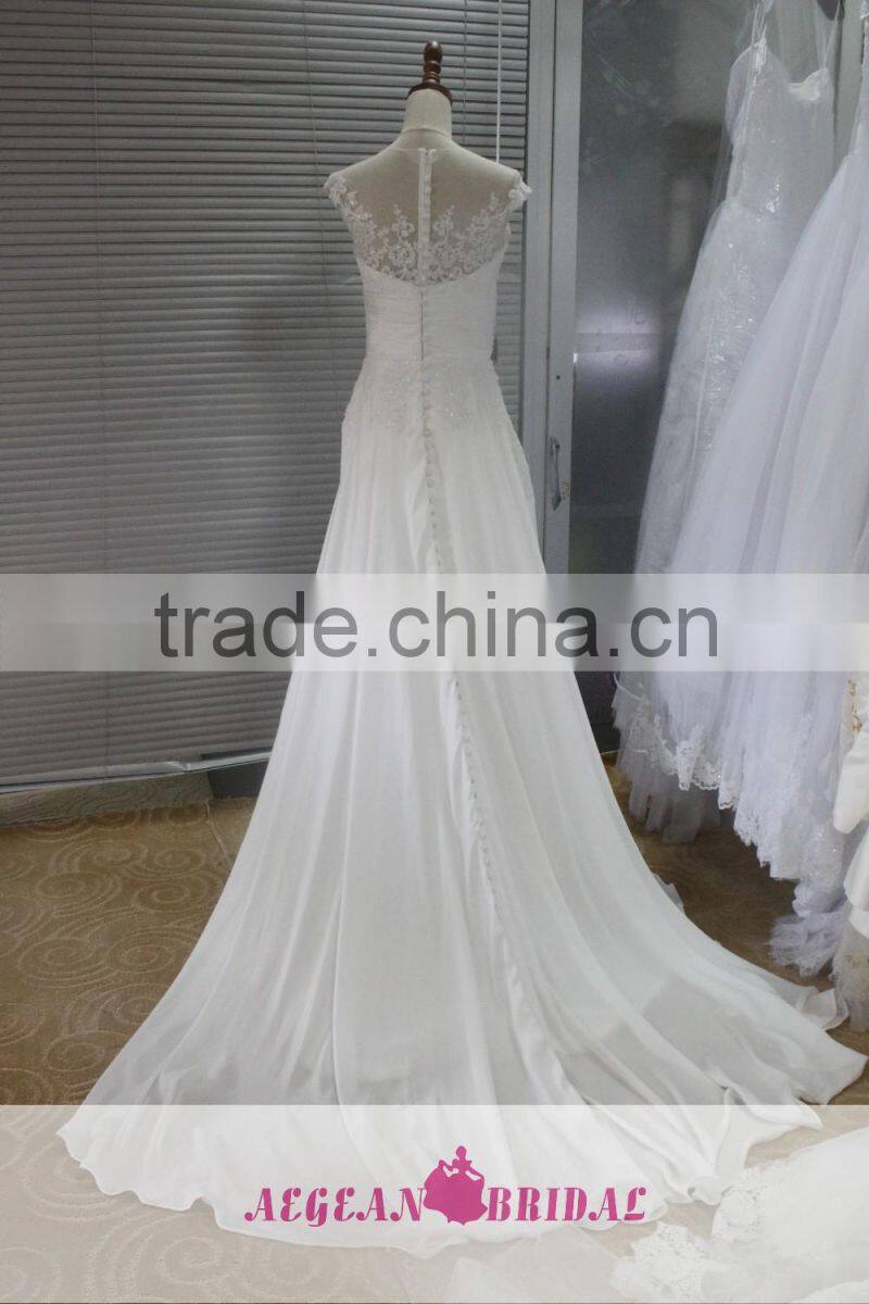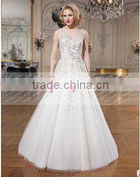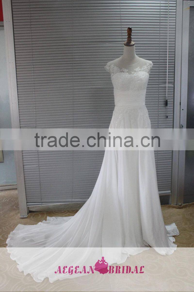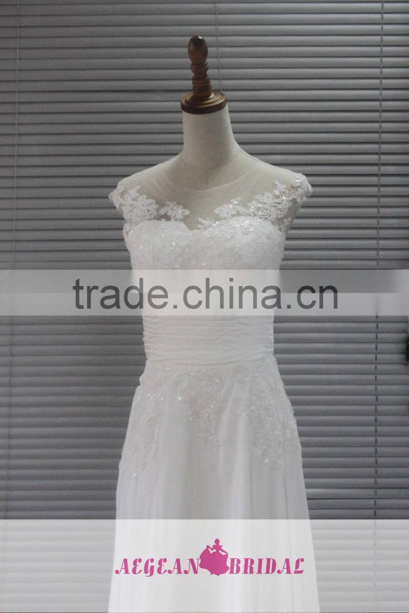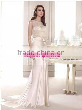 AR-11 Simple Generous White Elegant Long Sequined Appliques O-Neck Satin Bride Dress Boho Wedding Dress Beach Wedding 2016