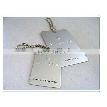 Our factory makes custom embossed dog tag, Pet ID, Pet necklace, metal tag, luggage tag, Furniture label, metal charm, metal pendant. Colors can meet your need such as gold, silver or other. Laser engrave sequencial ID Number is also available for different Numbers.