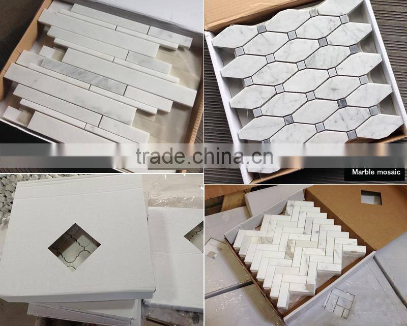 | Marble mosaic name | Hexagon mosaic tile,chevron mosaic tile,weave marble mosaic,herringbone mosaic tile,rectangular stack mosaic tile, landtern shaped mosaic tile,mini versailles pattern mosaic tile,etc |