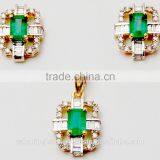 Cross Pattern Baguette Diamond And Emerald Pendant Earrings Set In Solid Gold