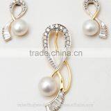 Twisted Design Pearl And Baguette Diamond Light Weighted Pendant Set For Women