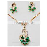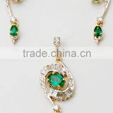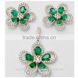 Floral Emerald Gemstone Cluster Diamond Gold Party Wear Pendant Set