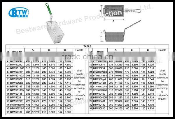 High Quality Rectangular Iron Wire Fry Basket With Black Nylon Handle