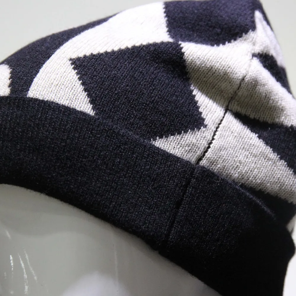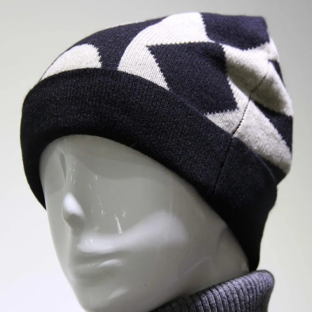100% Wool Jacquard Knitted Hat(knitted Beanie And Print Beanie Hat)