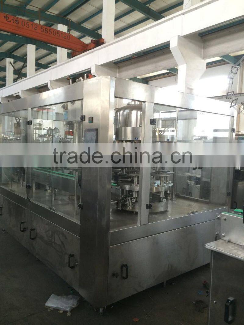 The washing, filling and capping will be finished just by one machine. It is very convenient to change bottle size by means of advanced bottle conveying technology--bottleneck clamping & bottle suspending technology.