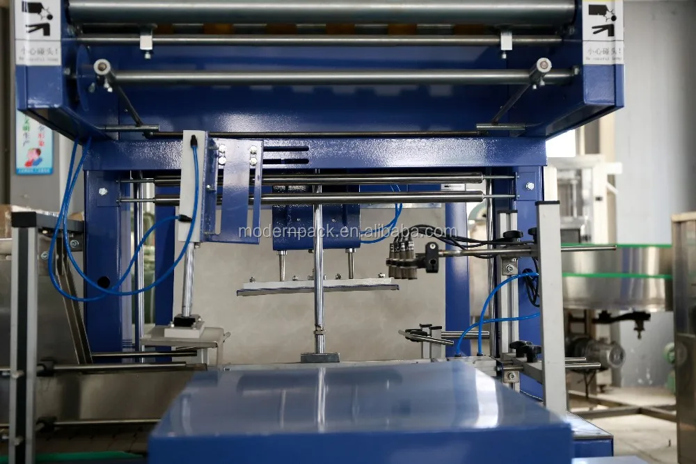 3) With automatic functions of bottle transfer and arrange,membrane packing,sealing and cut,shrinkage,cooling and shaping,etc.