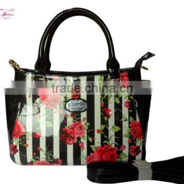 2016 Fashion Shiny PU Handbag With Rose in Stripes Print