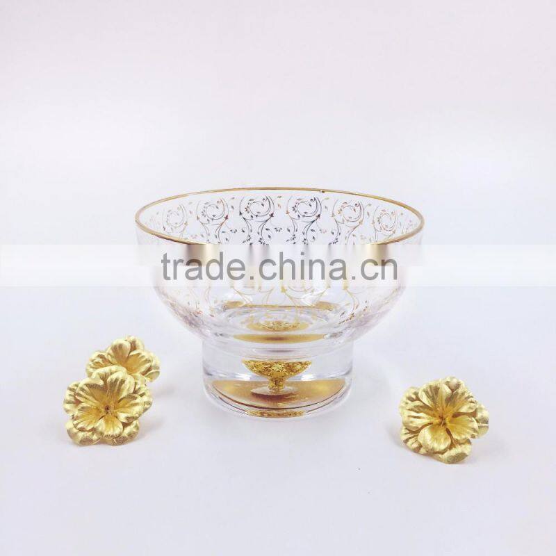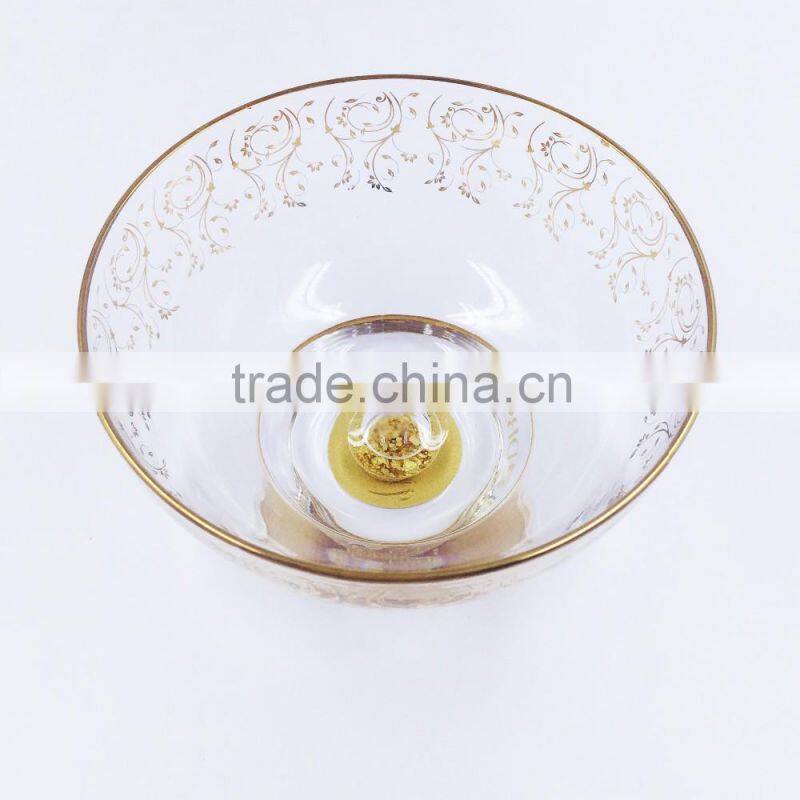 Lead-free Crystal Gold-Rimmed Tableware Bottom 24K Gold Foil Filled Unique Salad Bowl